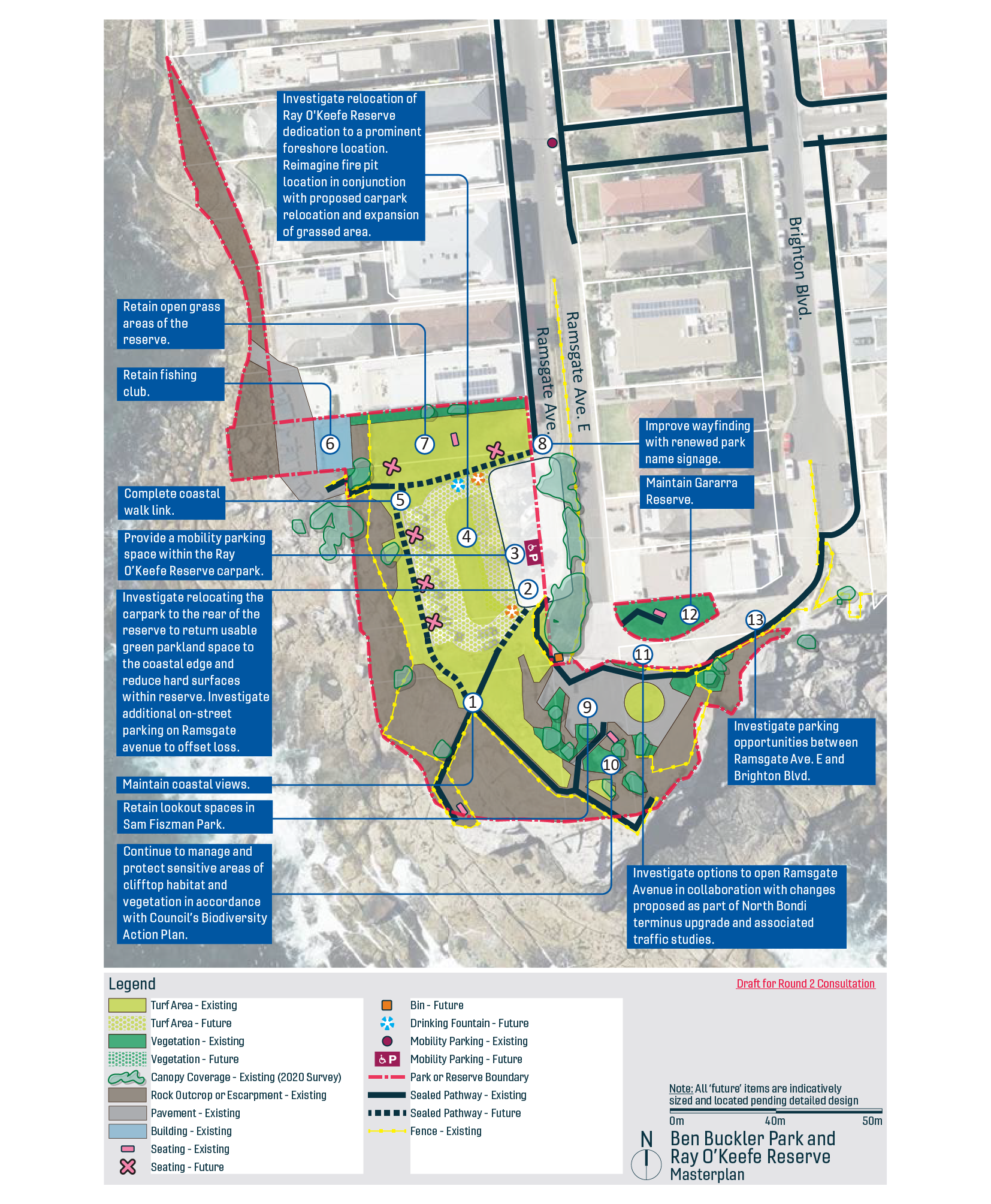 - view the 'key ideas' for the draft Master Plan for Ben Buckler Park and Ray O'Keefe Reserve