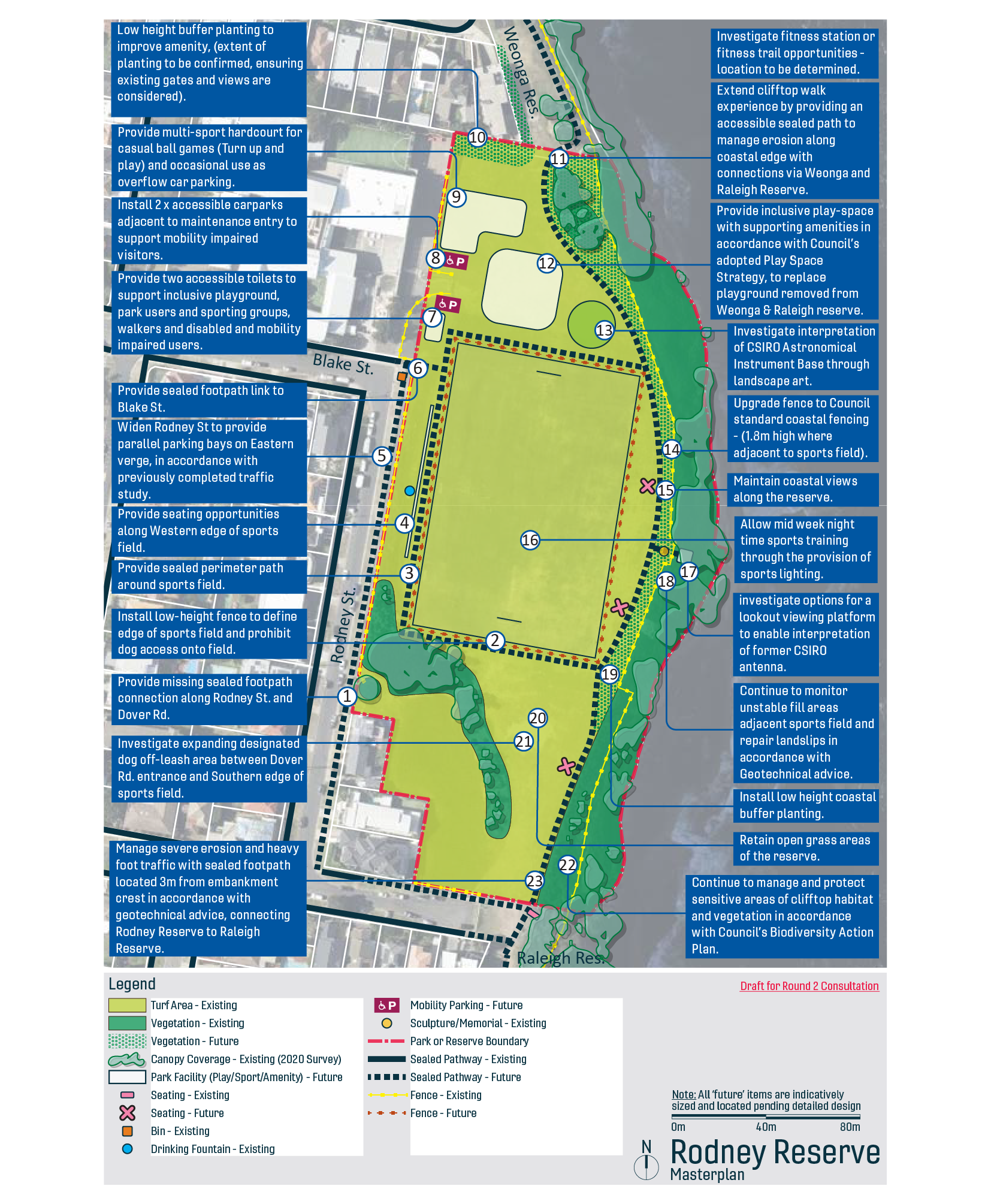 - view the 'key ideas' for the draft Master Plan for Rodney Reserve