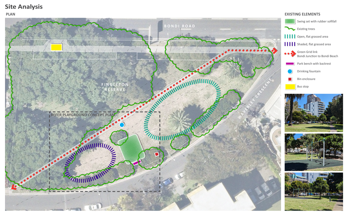 Waverley Council is planning to upgrade Fingleton Reserve. This upgrade will bring the play equipment up to date with the latest Australian Standards for safety, as well as improve the play experience of the existing play space as identified in Waverley Council’s Play Space Strategy.